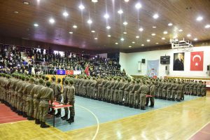 Saygı duruşu ve İstiklal Marşı’nın okunmasının ardından 369’uncu kısa dönem 155 er yemin etti.