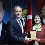 Görev yaptığım süre içerisinde her zaman bu fedakârlığı yaptığına şahit olduğum başkanım Armağan Hanımla beraberiz. Birlikte 15 Temmuzu ve 16 Nisan Halkoylaması sürecini yaşadık . Özellikle Bodrum’da Pazar esnafını ziyaret ederken birtakım kendini bilmez insanların nasıl da kadınlarımıza sataştığına, ağza alınmayacak laflar sarf ettiğine şahit olduk. Ne yazıktır ki bu hareketleri yapanlar da kadındı. Yapılanlara rağmen Armağan başkanım ve ekibi dimdik bir şekilde davamızı ve hizmetimizi anlatmaya devam etti. Ben özellikle o günü çok önemsiyorum. Telefonla arayıp halini hatırını sorduğumda ‘Başkanım hiç moralinizi bozmayın, biz yine dimdik bir şekilde broşürlerimizi dağıtmaya, davamızı anlatmaya devam ediyoruz.’ demişti. Ben şimdi huzurlarınızda kendisine söz vermek istiyorum ve ardından plaketini takdim edeceğim. Dedi.