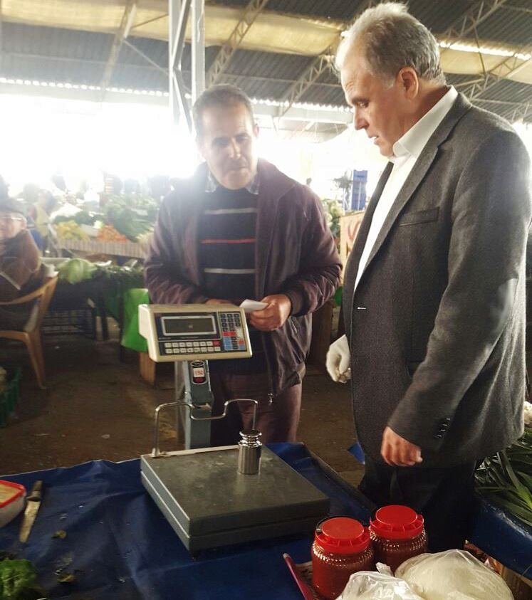 Dalaman Belediyesi Zabıta Müdürlüğü’ne bağlı ekipler Perşembe günleri kurulan Dalaman Açık Pazaryeri’nde tezgah açan esnaflar tarafından kullanılan tartıları ve satılan ürünlerin kontrollerini yapıyorlar.