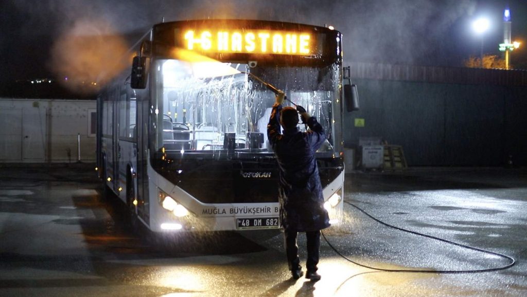 Muğla Büyükşehir Belediyesi’nden yapılan açıklamada “Son günlerde etkili olan ve tüm dünyayla birlikte Türkiye’nin de gündeminde olan corona virüsü başta olmak üzere her türlü salgın hastalık riskini en aza indirmek amacıyla, yolcu hareketliliğinin yoğun olarak yaşandığı Muğla otogarı başta olmak üzere tüm ilçe otogarlarının ve toplu taşıma araçlarının dezenfekte ve sterilizasyon çalışmaları arttırıldı. Sefer sonunda yapılan temizlik çalışmalarında otobüslerdeki yolcu tutmaçları, koltuklar, havalandırma kapakları, cam ve metal yüzeyler yüzeye uygun ürünler ile rutin olarak dezenfekte ediliyor” denildi.