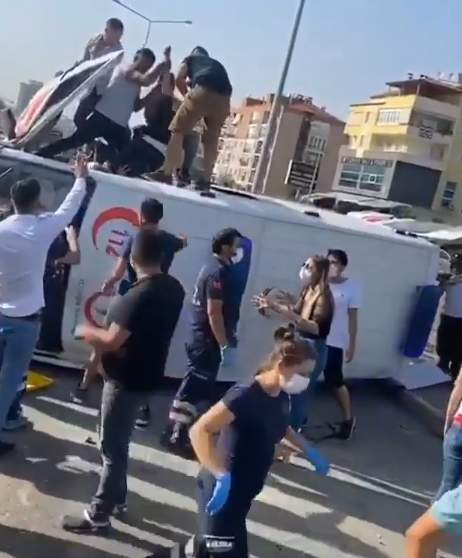 Denizli’ye Dalaman dan hasta nakil eden ambulans sirenleri açık şekilde trafik ışıklarından geçerken Orman İşletme Müdürlüğüne bağlı çift kabin araç ile çarpıştı.Çarpmanın etkisi ile ambulans devrilirken kazada 5 kişi yaralandı. Güvenlik kamerasına yansıyan kazada bir yaya ise saniyelerle ölümden kurtuldu.Kaza, Pamukkale ilçesi Acıpayam Bulvarı üzerinde meydana geldi. Edinilen bilgilere göre, Dalaman’dan Denizli’ye hasta nakil eden Gülbahar A. yönetimindeki 48 ABP 465 plakalı ambulans sirenleri açık vaziyette kırmızı ışıktan geçmek istedi.O esnada kendisine yeşil ışık yanan Orman İşletme Müdürlüğüne ait Murat Dektaş idaresindeki 20 BDA 05 plakalı pikap yola çıktı. Güvenlik kameralarına anbean yansıyan kazada en sol şeritten ilerleyen ambulans ile pikap çarpıştı. Çarpmanın etkisi ile içerisinde hasta bulunan ambulans yan yatarak metrelerce sürüklendi. Ambulans aydınlatma ve trafik levhalarına çarparak durabildi. Saniyeler ile ölümden kıl payı kurtuldu.Kazadan saniyeler önce kendisine yeşil ışık yanmasını bekleyen bir yaya araçların kırmızı ışıkta durmasını fırsat bilerek karşıya geçmek istedi. Bir iki adım sonrası gerçekleşen kazada ismi öğrenilemeyen yaya saniyeler ile ölümden kurtuldu. Çevredeki vatandaşların ihbarı üzerine bölgeye çok sayıda polis, itfaiye ve sağlık ekibi sevk edildi. Olay yerine gelen itfaiye ekipleri devrilen ambulansta sıkışan sağlık görevlileri ve hastayı kurtarmak için yoğun uğraş verdi. Kazada sürücüler Gülbahar A., Murat Dektaş, sağlık görevlisi Tuğçe B. ve Tülay C.’nin yanı sıra ambulansta hasta olarak bulunan Murat Büyükkör ve Orman İşletme Müdürlüğüne ait pikapta bulunan Mehmet Sarıkaya olmak üzere toplamda 6 kişi yaralandı. Yaralanan sağlık görevlileri ve vatandaşlar çevre hastanelere sevk edildi.(Metin:Güneyege)