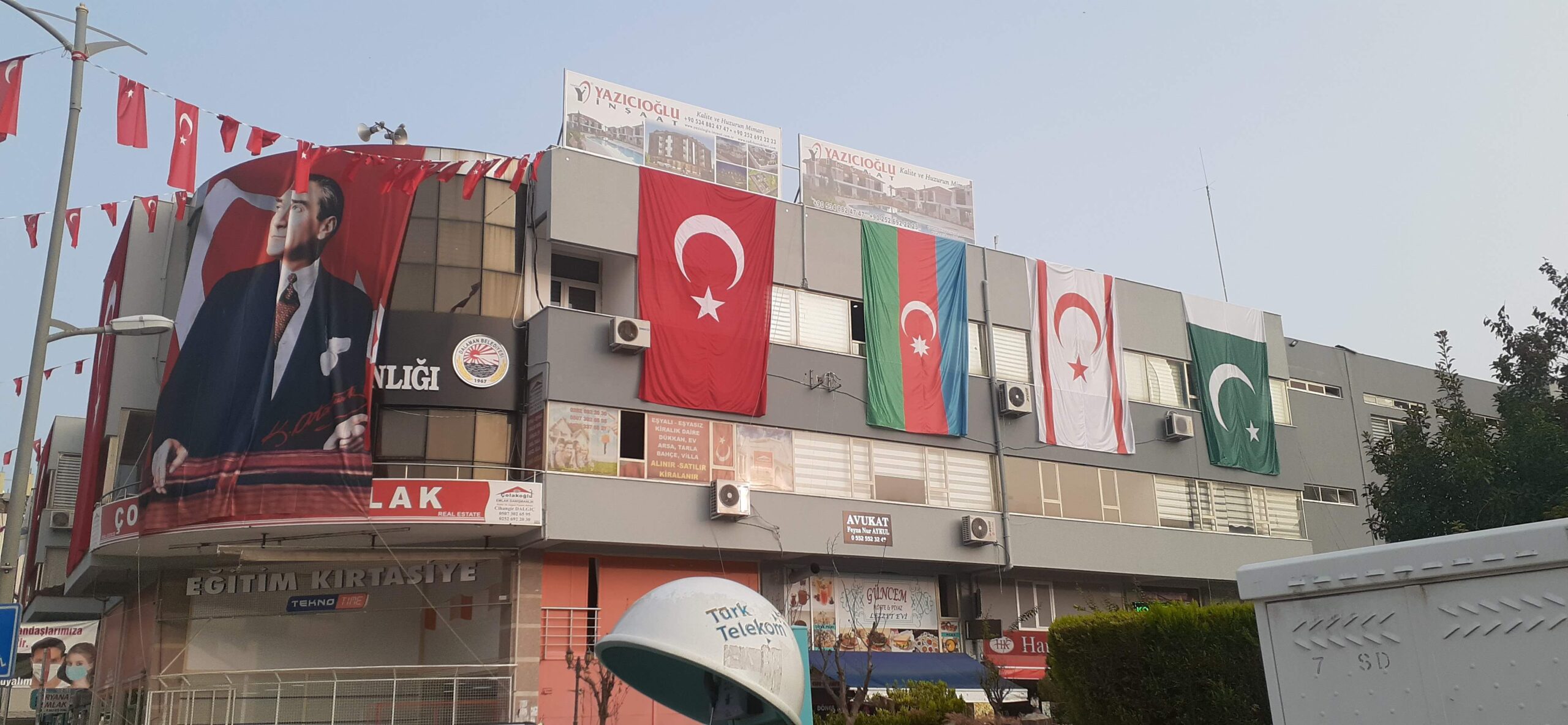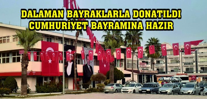 29 ekim Cumhuriyet Bayramı öncesi Dalaman başta Atatürk caddesi ve Cumhuriyet meydanı Atatürk anıtı olmak üzere bayraklarla donatıldı.