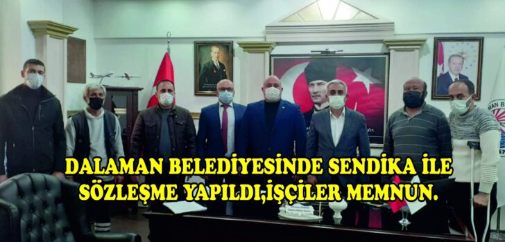 Dalaman Belediyesi ile Belediye İş Sendikası arasında işçileri ilgilendiren toplu iş sözleşmesi Belediye Başkanı Muhammet Karakuş ve Belediye iş sendikası Muğla şube Başkanı Ender Akbay ve Yardımcısı Atilla Türkmen tarafından imzalandı.