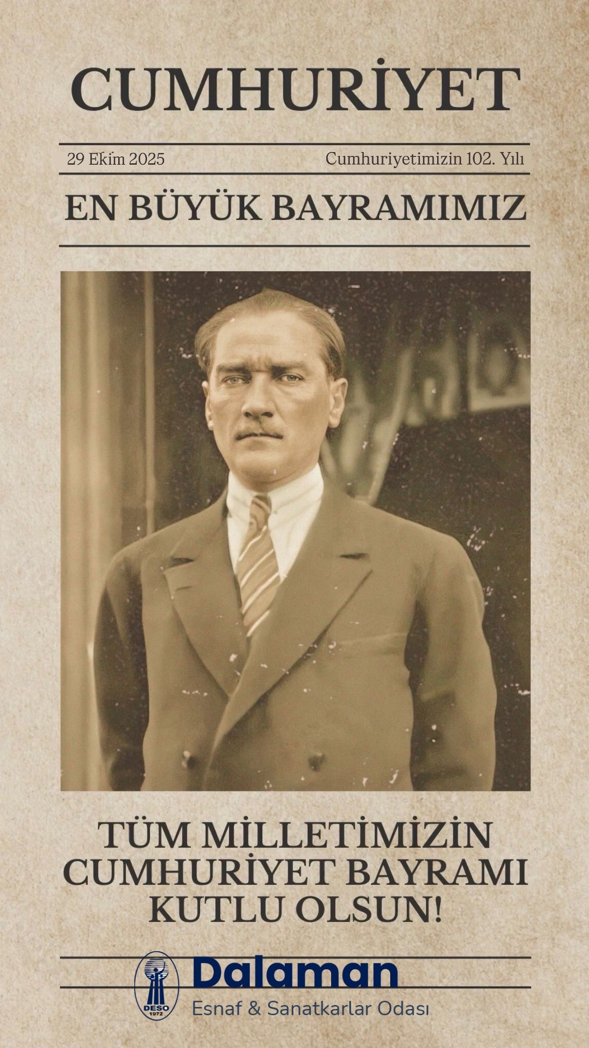DALAMAN ESNAF VE SANATKARLAR ODASININ CUMHURİYET BAYRAMI TEBRİĞİ.