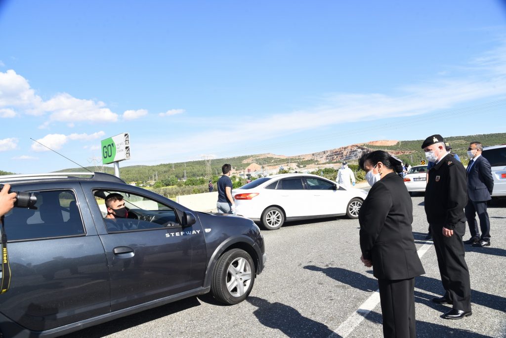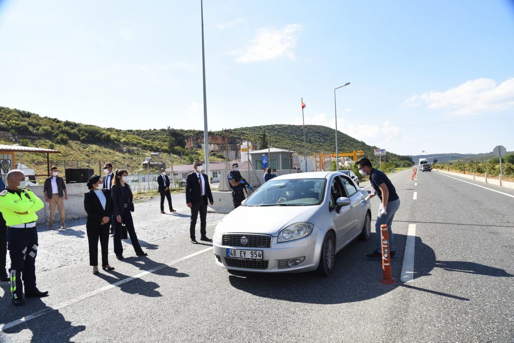 Muğla Valisi Esengül Civelek, Yatağan-Aydın karayolu üzerinde bulunan uygulama noktasında koronavirüs salgınıyla mücadele kapsamında yapılan denetimleri inceledi.