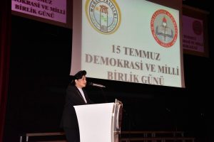 Vali Civelek’in konuşmasının ardından 15 Temmuz Şehitleri ve Demokrasi Zaferi Oratoryosu, 15 Temmuz için hazırlanan video gösterimi yapıldı. Daha sonra, 15 Temmuz Marşı seslendirildi.