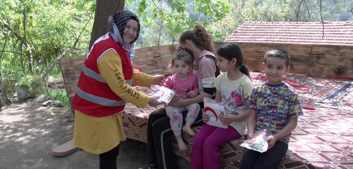 DALAMAN KIZILAY ŞUBESİNCE ÇOCUKLARA BİSKÜVİ PAKETİ DAĞITILDI