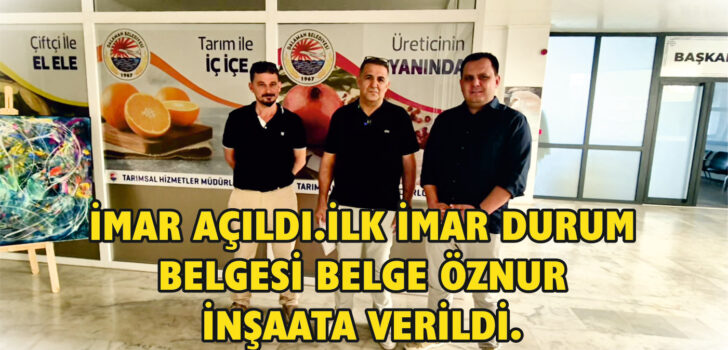 İMAR AÇILDI.İLK İMAR DURUM BELGESİ BELGE ÖZNUR İNŞAATA VERİLDİ.