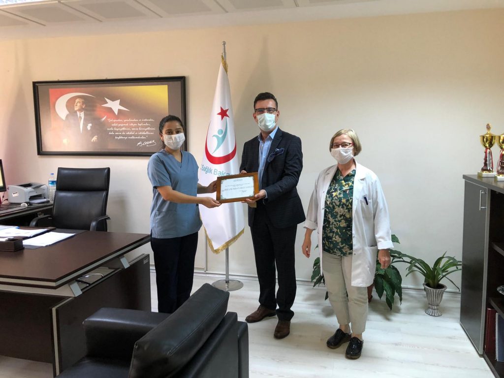 Yapılan konuşmaların ardından Dalaman Devlet Hastanesi Başhekimi Uz.Dr. Birsen İlhan YDA Dalaman Havalimanı Genel Müdürü Cengiz T. Ayaz’a desteklerinden dolayı Teşekkürlerini sunan belgeyi takdim etti.